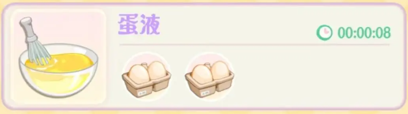 蛋液在游戏内,总共需要消耗玩家两份鸡蛋,打发八秒钟,就可以获取了。