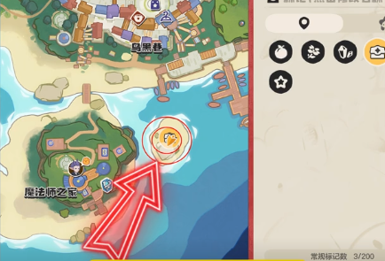 第4个宝箱则是在魔法师之家,玩家可以看到在右边有一个小岛,不过要想打开这一个宝箱,就需要选择小海豹通过水系技能。