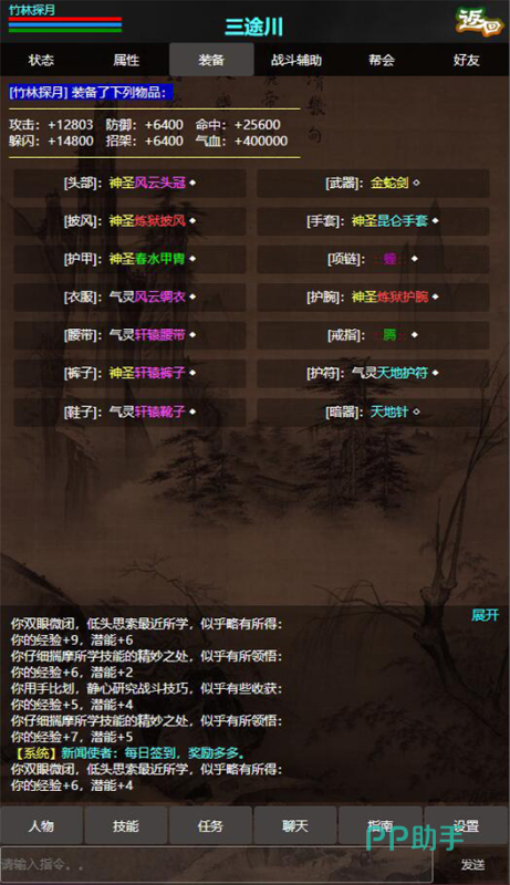 《书剑群侠传MUD》设计了一个引人无限遐想的江湖世界,在这里你可以独断专行的肆意探寻,与各种属性值爆棚的怪物进行战斗,提供了层出不穷的功法秘籍,都能让人物的战斗能力迎来更上一层楼的飞跃,运用了深入人心的故事构架,为大家呈现了意味深长情节设定,你可以习得一身高强的武艺,在江湖战无不胜。