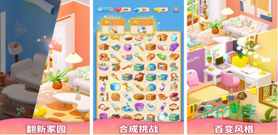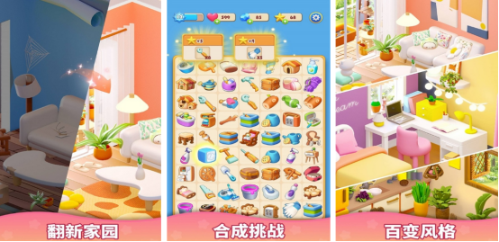 简单的操作方式,还将合成以及装扮家园为核心玩法。开局后您将会看到色彩缤纷的物品,这些物品的位置都是被随机打乱顺序的,玩家要通过上下左右滑动的方式,将两个相同的物品放在一起,从而合成更高等级的物品,还能呈现出非常高档的装饰物来装扮自己的家。其中设立的房间有很多,您可以翻新家园或者重新布置。