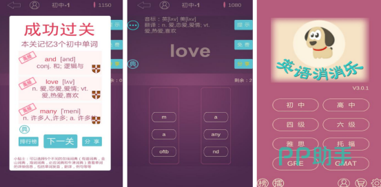 英语是世界上通用语言之一,但是很多学生在学习英语时就会觉得枯燥,而此游戏是以英语单词为基础,一边闯关一边还可以学到更多的新单词,提高词汇量。其中涵盖了4万多个英语单词以及短语等等,你也可以从不同的难度等级当中随意挑选,从小学到托福应有尽有。在升级之后还体现出了排行榜以及星级模块,可在此系统中查看自己的成绩。