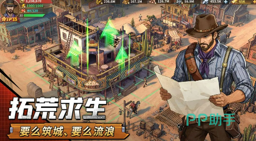 游戏融合西部拓荒题材与末世生存设定,构建出风格鲜明的废土世界观。玩家从一座资源匮乏、建筑坍塌的边境小镇起步,同步应对丧尸威胁、敌对玩家突袭及匪帮掠夺等多重挑战。城建系统采用轻量化设计,摒弃繁琐操作流程,支持建筑一键升级功能,显著降低养成门槛。