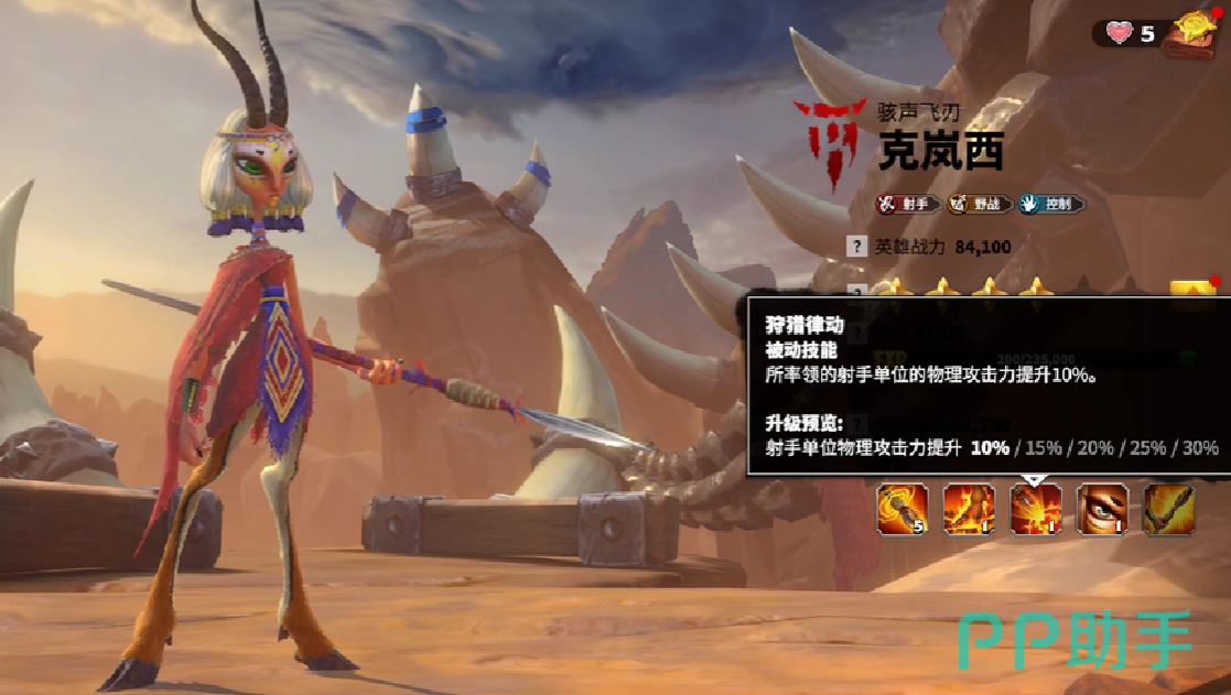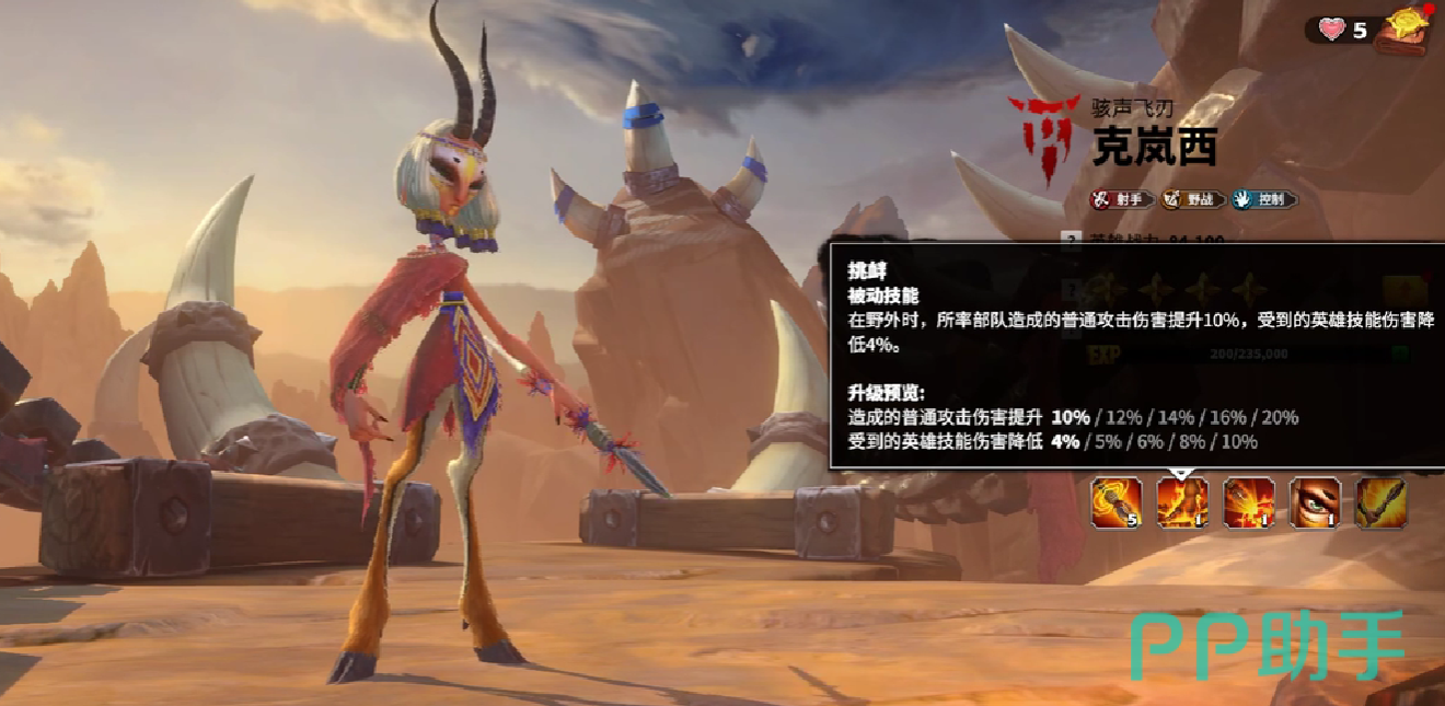克岚西的大招搭配宠物技能进行释放,可以对目标的部队造成一次aoe伤害,该伤害系数的数值达到了1400,并且给对方目标造成虚弱效果,附带克岚西的基础被动,在率领射手单位的同时提升自己的物理攻击倍率,该倍率最高叠加到30%,可以说克岚西是射手英雄之中最强的了。