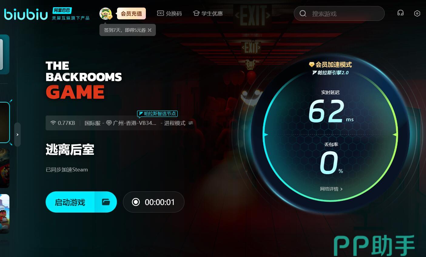 为了增强游戏的趣味性,逃离后室内还引入了随机元素这一设定,进入特定房间后,其中的道具、怪物都是随机出现的,位置并不固定,让大家每次游玩都能有新发现。这样的设计虽然巧妙,但在每次都有等待加载,网不好的话就会造成闪退、卡顿,让你无法开启对局,届时启动biubiu加速器就能解决,不仅能让你顺利进入对局,还能优化实际的画面,之后就算同时在线多名玩家,也不用担心线路拥堵了。之前没用过biubiu的朋友,现在不妨赶快注册一个新号去试试,新用户能免费试用3小时。此外,每一个用户在输入【biubiu不卡顿】后,还能领到三天的会员,两者叠加在一起足够你去体验各项功能了。