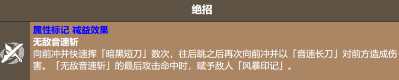 普通攻击名为「刺客冲锋」,以暗黑短刀发动三段式连续斩击,兼具音符叠加与稳定伤害输出功能;蓄力攻击「月牙斩」则切换为音速长刀,由正面发起高伤单体劈砍,需预判敌方走位并把握释放窗口。