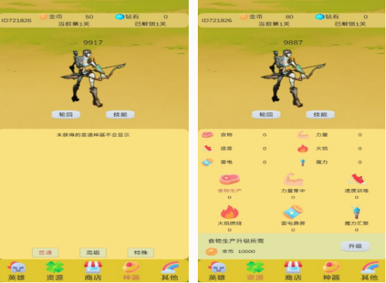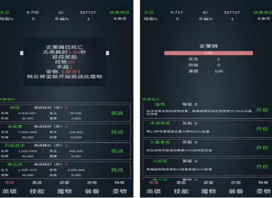 这款以轮回制放置为主要玩法的游戏中,你会成为勇敢的冒险者,面对一个又一个强大的boss时,通过升级的神器以及不断招募英雄的方式。进行挑战。由于每个boss,所具备的伤害实力不同,每个英雄的属性技能不同,所以必须要在打boss的过程中,合理的进行搭配。在每次轮回中,也会有新的英雄神器以及boss。