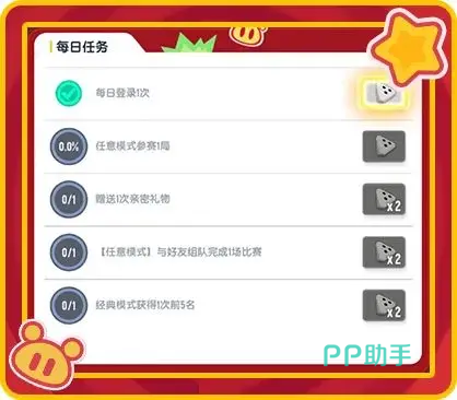 活动期间,玩家每日完成指定任务即可获取基础骰子投掷次数。每次掷骰后,角色将沿地图路径前进对应步数,落点格子即为奖励归属位置。整张活动地图由多种功能格组成,不同格子内嵌有差异化奖励,包括点券、缤纷补给箱钥匙、友友卡、彩虹补给箱钥匙、免哭金牌、亲密礼物、糖果及季票勋章等实用道具。