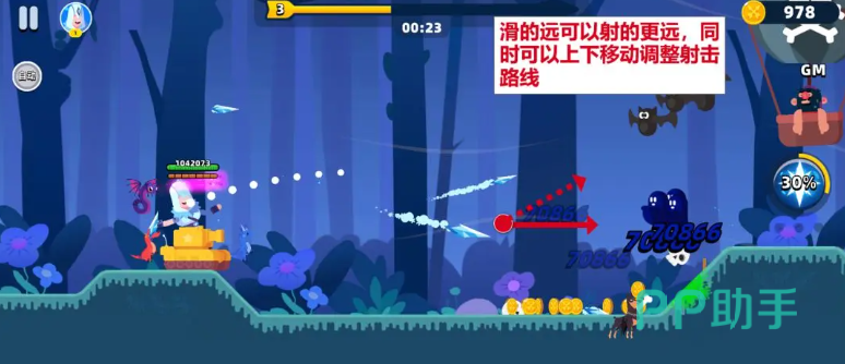 关于基础射击机制,游戏采用了直观的拖拽瞄准方式,玩家只需滑动屏幕拉出轨迹线,松手即可发射弓箭。通过上下滑动还能调节箭矢的抛射角度,影响其飞行轨迹。随着进度推进,角色可解锁长按蓄力功能,蓄力后射出的箭拥有更高的实际伤害输出。虽然操作门槛低,但敌人始终处于移动状态,因此需要玩家对目标行进路线进行预判,否则容易因箭速差异导致攻击落空。