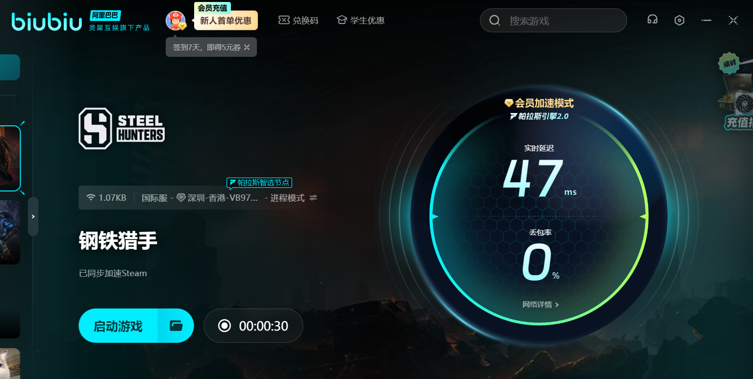 现在,无论是新加入的用户还是老朋友,都能凭借【biubiu不掉线】享受3天的免费服务。新注册并登录的伙伴还将额外获得3小时的提速特权。将这两项福利结合使用,总共拥有75小时的时间!