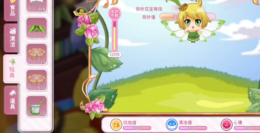 除喂食外,三项基础互动行为同样影响升级速率:清洁、玩耍与使用道具。其中清洁与玩耍为每日免费操作,不消耗任何资源,仅需上线点击即可提升花宝好感度;而好感度每提升100点,花宝获得的经验加成将提高2%,该增益可叠加至最高15%。道具类物品属一次性消耗品,适用于冲刺关键等级节点,建议在挑战高难度花田任务前集中使用。