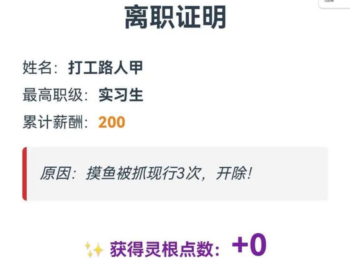 游戏采用五维动态数值模型:薪酬(对应灵石储备)、发量(即生命值)、精力值、压力值、人脉值(因果线)。日常工作会同步消耗精力并累积压力,当压力突破阈值将触发“道心动摇”,造成发量不可逆下降;而合理安排摸鱼时间则可恢复生命值,但需规避老板神识扫描——该机制还原了真实职场中的节奏张力与风险权衡。
