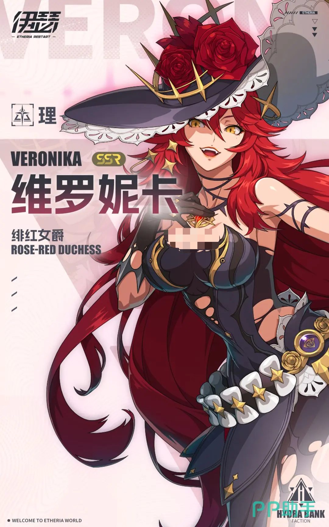 伊瑟维罗妮卡,也被玩家称为”绯红女爵”,是一位理属性的SSR级角色。她的整体造型充满“妖艳”气质,展现出一种“热情似火”的视觉冲击力。作为一名性格高调且行事张扬的年轻女性,她拥有一头醒目的红发,服饰风格始终华丽繁复、剪裁前卫,极具辨识度。这样一位角色自然吸引了大量关注,许多玩家都对她所具备的战斗能力充满兴趣,接下来我们就详细解析她的技能机制。