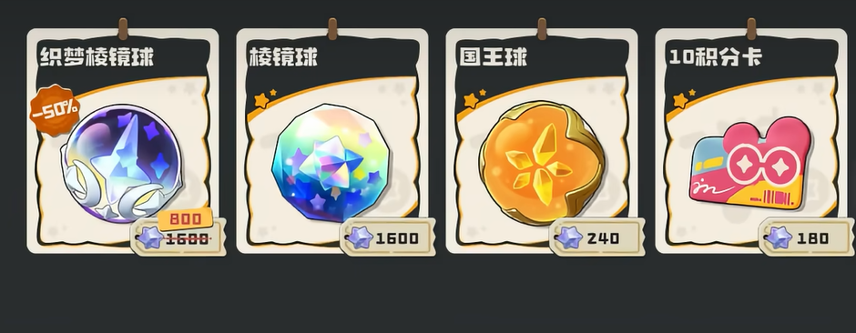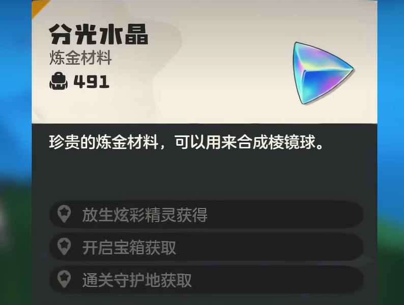 棱镜球分为赛季限定款与常驻通用款两类。单颗售价为160元。其中,赛季棱镜球仅限S1赛季使用,捕获所得炫彩精灵统一采用黑白双色主题,命名为“暗夜时光”;常驻棱镜球则产出全色系随机炫彩外观。高性价比获取途径为:购买S1通行证并全额领取全部奖励,可获赠三颗赛季棱镜球。零氪玩家可通过挑战指定副本积攒“分光水晶”,集齐1600枚即可兑换一颗常驻棱镜球。