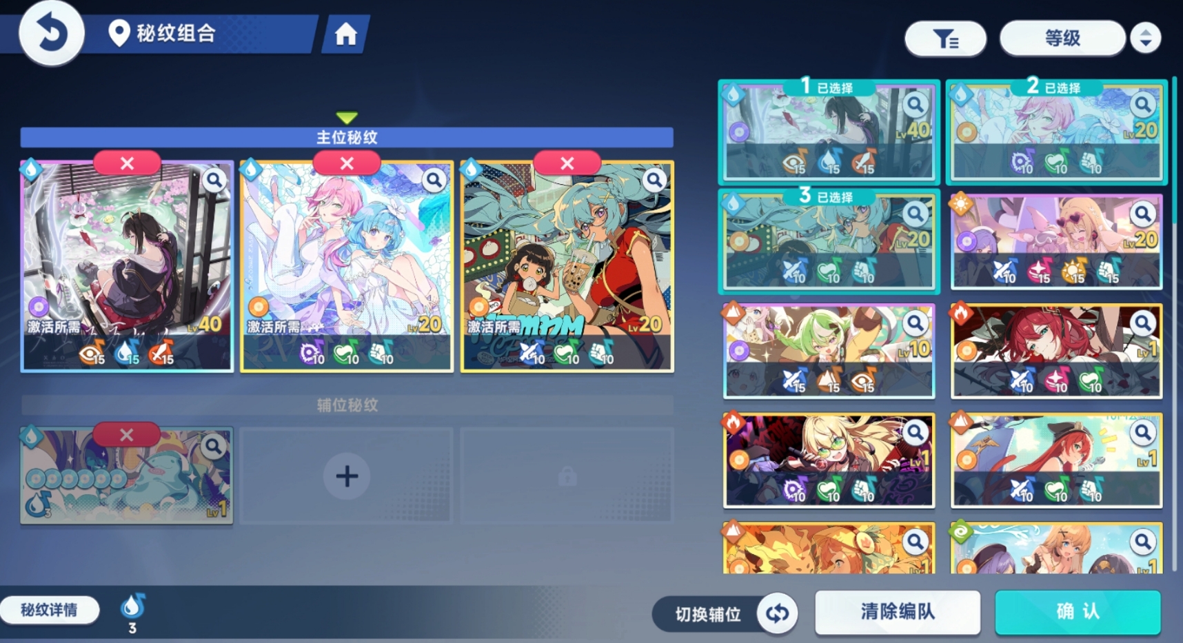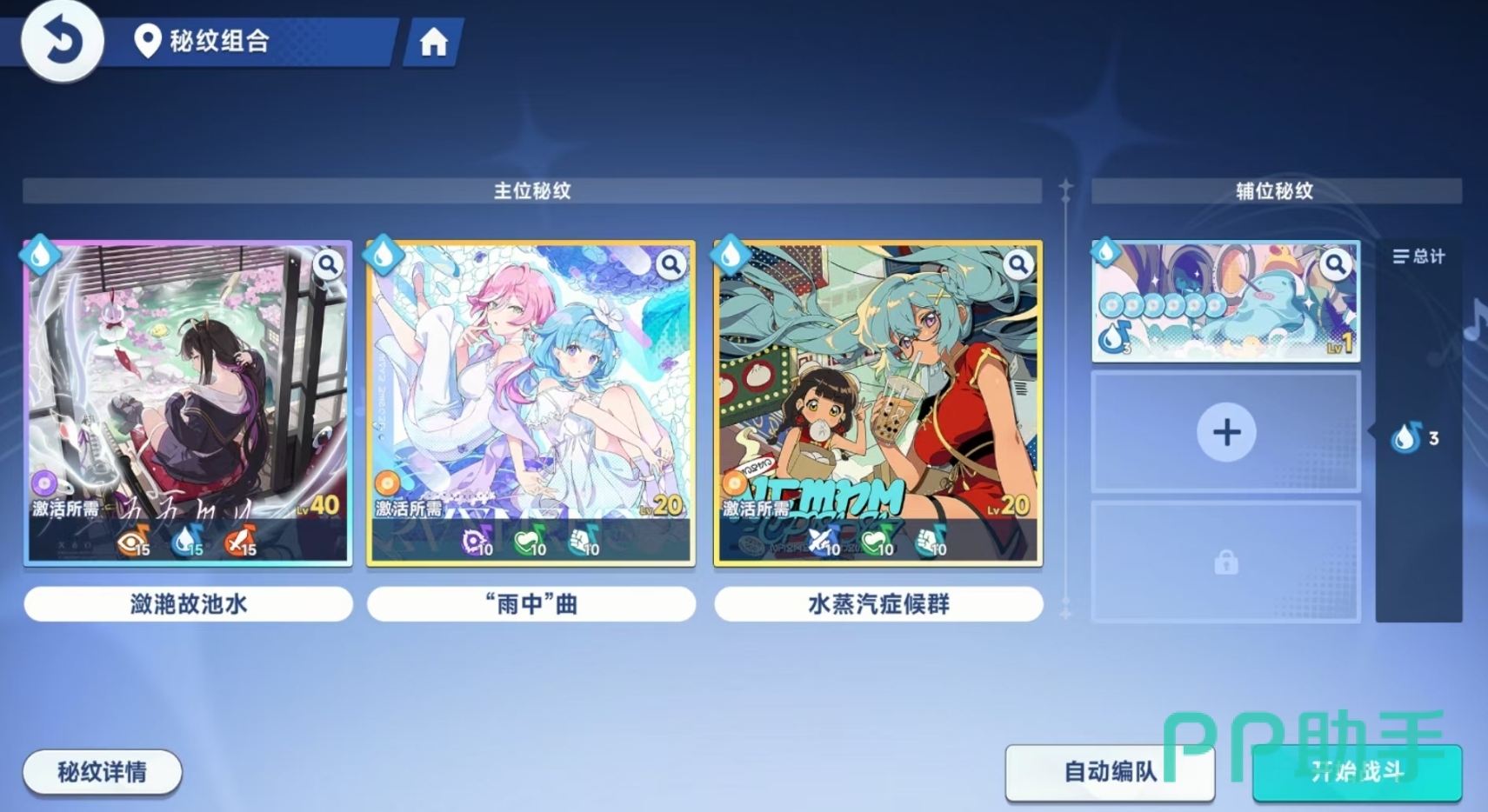 辅位秘纹的作用在于补充音符数量,降低主位秘纹激活协奏技能所需的音符门槛。在实际搭配时,可先进入秘纹组合界面选定主位秘纹,随后根据其所需音符类型筛选携带对应音符的辅位秘纹。游戏内置了清晰的音符标识系统,每张秘纹所含音符种类与数量一目了然。当辅位秘纹提供的音符与主位需求一致时,图标会自动高亮显示;若不匹配则呈现暗色状态。因此,只需挑选所有音符均处于高亮状态的辅位秘纹即可,无需顾虑其元素是否与队伍一致。