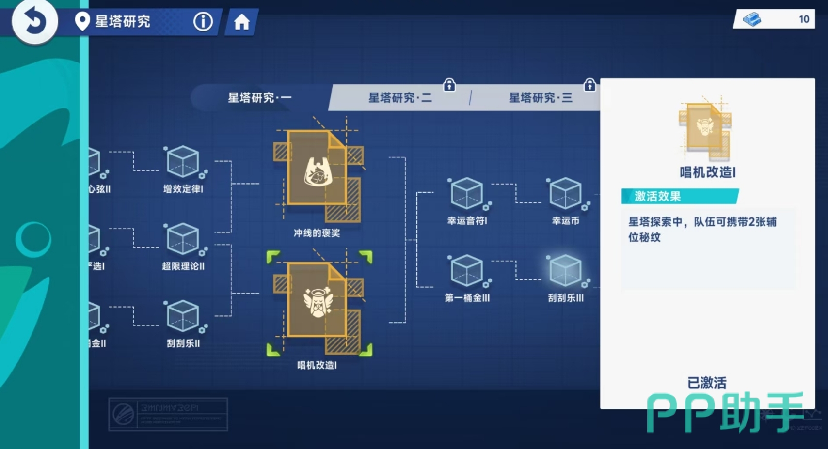 初始状态下,每个队伍可装配三张主位秘纹和一张辅位秘纹,其余两个位置处于锁定状态。玩家可通过挑战星塔关卡完成任务获取科技点,用于解锁“星塔研究”中的唱机改造项目,从而开启额外的辅位秘纹槽位。此外,对于希望节省时间的玩家,游戏中还提供了“一键搭配”功能,系统将自动推荐适配当前队伍的主位与辅位秘纹组合,之后可根据实际情况进行微调优化,大幅提升配置效率。