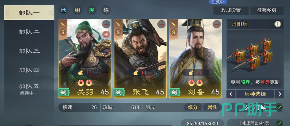 武将养成需分阶段进行规划。初期主要使用的多为紫品武将,如关羽、诸葛亮等,适合作为过渡期主力。无需急于抽取高稀有度角色。当武将达到15级并开启装备系统后,即可挑战高级蛮族单位,借此获取装备强化材料。待装备等级升至25级,还可解锁多种兵法组合,例如勇武、军略刚毅、励军等,均可在实战中灵活配置,增强队伍整体表现。