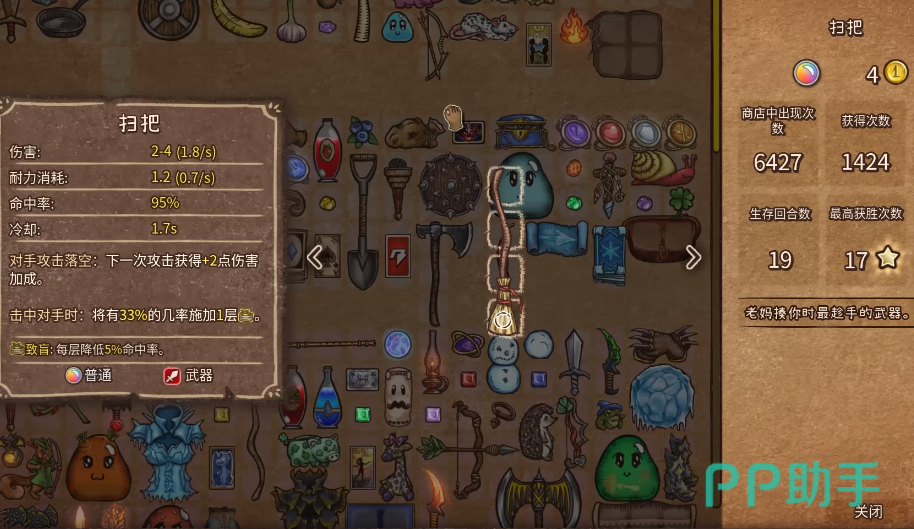 在游戏里可供玩家选择的武器装备非常多,除此之外还会有大量的药水宠物,每个物品的稀有度不同,售卖的价格也不一样,他们在对战过程中,产生的能力也会各不相同,玩家需要根据自身现阶段的能力,选择相应的武器购买,接着把这些武器放置到背包里,很多武器通过相邻摆放,能产生额外的战斗效果,玩家可以把这些带有特定属性的物品摆放到一起,这样才能通过巧妙的布局,让道具之间可以互相呼应。