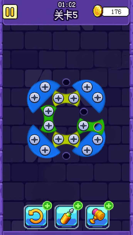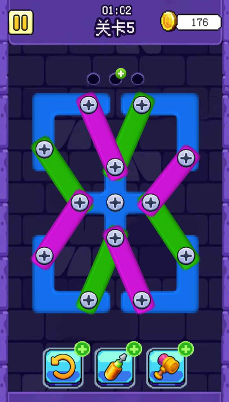 游戏内设有海量精心打造的关卡,每一关的板子和螺丝排列都截然不同,难度呈递进式增加,从简单的单层木板螺丝整齐排列,到复杂的多层结构螺丝隐藏在各种机关之后,有的关卡中板子被特殊材质包裹,需要先拧开特定螺丝触发机关,才能继续拆除其他螺丝,还有的关卡螺丝周围存在干扰元素,玩家在拆除螺丝时要时刻留意,避免受到影响,丰富多样的关卡类型,让玩家在持续挑战中,不断激发自身的智慧和技巧。