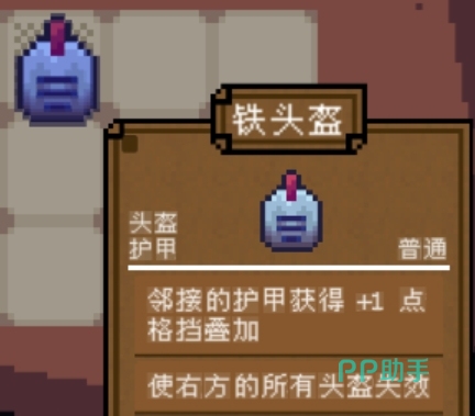 头盔与护甲类道具主要提供防御向加成。基础款如帽子、面具等不仅能恢复法力值,还附带格挡与闪避属性。其中传说级别的帽子尤为强力,可为非刀类武器提供50%的伤害加成,并额外增加两点格挡值。带刺头盔则具备攻击性功能,针对右侧装备可使其失效并叠加4点输出,但需注意:只有当角色处于背包最上方一行时,此类头盔才能生效,因此布局时必须谨慎考虑位置安排。