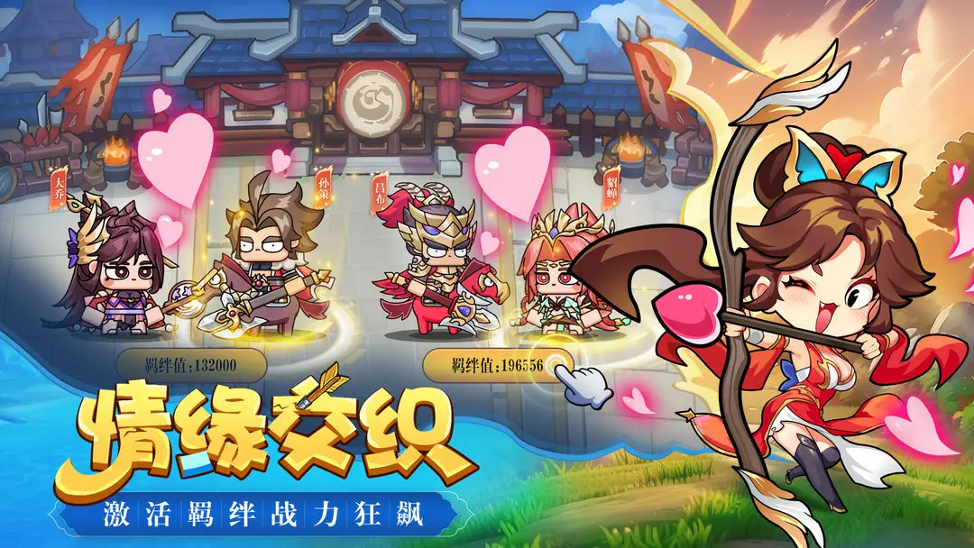本作采用轻操作高策略的自走棋框架,主打“布阵即战斗”的设计理念。玩家无需实时操控角色释放技能或走位,只需通过拖拽完成武将站位配置,系统将自动推进回合制战斗流程。胜负关键高度依赖阵容构建逻辑——包括武将间技能联动性、兵种相克关系(如枪兵克骑兵、骑兵克弓兵)、以及多层级羁绊组合的激活效果。合理规划前排坦度、中排输出与后排辅助的协同结构,是通关PVE关卡与竞技场对战的核心门槛。