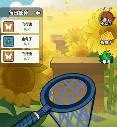 若需短暂休整,可切换至【田园草场】开启休闲玩法。手持捕虫网,在开阔草场中捕捉各类昆虫。虫子按体积与种类划分稀有度,稀有度越高,提供的战力加成越显著。每日需提前储备足量诱饵,前往草场随机触发捕捉事件,有机会邂逅传说级稀有虫种。场景内设有多种目标类型,如飞行虫、金龟子等,完成对应捕捉任务后,还可解锁额外奖励。系统小助手会同步推送当日待办事项,确保不遗漏任一成长节点。