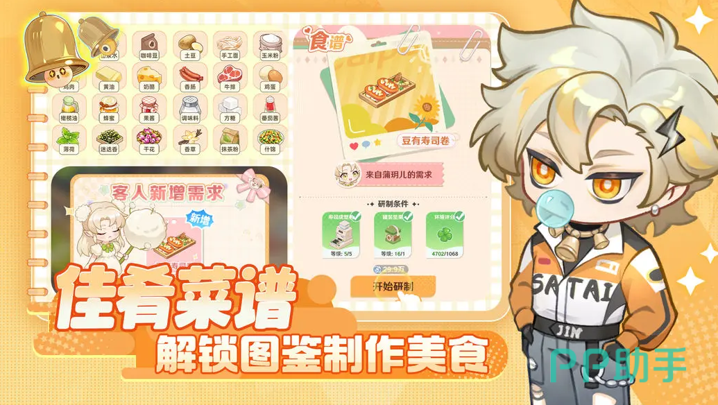 在《解忧小食光》的经营体系中,菜谱数量与研发进度直接关系到店铺人气值与营收增长效率。大量玩家在实际游玩过程中,会主动搜索食谱解锁条件、研制流程及关键前置要求等实用信息,以更高效地推进主线经营节奏。游戏采用渐进式开放机制——并非初始即解锁全部菜品,而是依托“研制系统”分阶段释放新食谱,既强化探索乐趣,又持续为玩家提供清晰的阶段性目标。