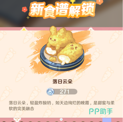 以人气菜品“落日云朵”为例,其外观辨识度高、顾客评分稳定处于高位区间。研发前须确保炸锅与奶品精致机均已解锁,且等级达标。进入研制界面后,系统启用转盘机制随机提示所需原料,如酸牛奶、面粉、小磨油、肉松等,玩家需在限定尝试次数内按顺序精准选择。操作节奏需匹配指针转动规律,失误将触发冷却等待,大幅提升交互沉浸感与策略参与度。