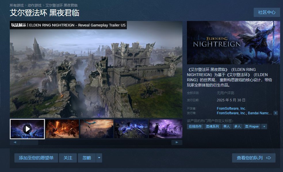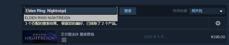 在steam平台艾尔登法环黑夜君临的正式英文名为《Elden Ring: Nightreign》,当然也可以输入中文名进行查找,中文名字叫做《艾尔登法环 黑夜君临》。建议直接复制,以便精准检索,此外,游戏支持简体中文界面,玩家无需担心语言障碍。