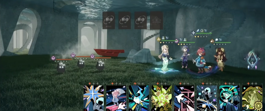 每个回合开始阶段,她还会依据所选流溢颜色抽取一张对应“各色流溢”的特殊咒语卡。以紫色为例,可能触发“预见”效果,降低释放“劫数难逃”所需的“余辉”门槛,从而提高大招释放频率。若队伍中存在多个相同颜色的流溢配置,则抽中对应咒语的概率进一步提升。