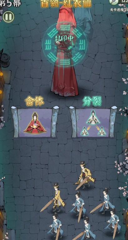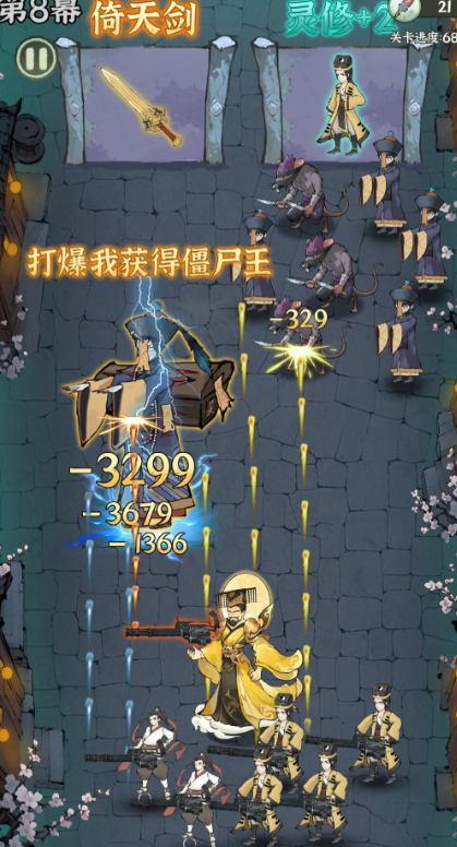 跑酷玩法按章节推进,每位灵修可独立出战,玩家需根据关卡中的奖励选项做出策略选择,例如获取倚天剑增强战力,或增加灵修数量提升续航能力,合理决策是通关高难度挑战的关键。