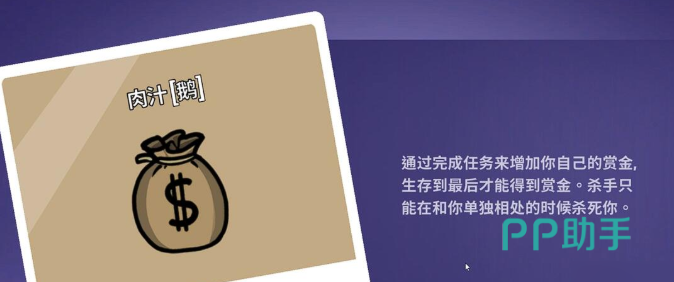肉汁的核心技能在于通过完成任务逐步累积赏金,完成的任务数量越多,最终结算时可获得的银币奖励就越丰厚。但需要注意的是,该奖励仅在角色存活至游戏结束时才能领取。此外,肉汁具备一项关键防御机制:杀手必须在与其单独共处的情况下才可实施击杀,这为团队协作提供了重要保障。