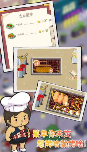 这是一款休闲益智的模拟经营游戏,以一家充满故事的烧烤店为舞台,展开一段温馨的经营之旅。游戏画面采用了小清新的设计风格,为玩家带来别具一格的视觉享受。在这里,一位外表粗犷但内心热情的中年大叔,在炭火旁展现着他高超的烧烤技艺,吸引着越来越多的顾客前来品尝。同时,玩家还可以用赚来的钱装修烧烤小店,升级店铺设备,让店铺越来越有特色。