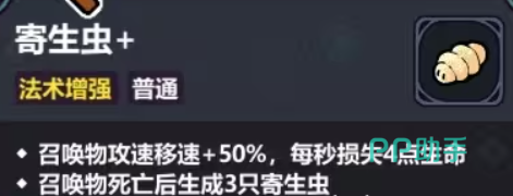 为了进一步强化此体系,建议搭配“巨魔血清”和“灵魂链接”来显著提升自爆虫巢的生命值。随后加入辅助技能“寄生虫”,该技能不仅使召唤物获得50%的攻速与移速加成,还能在每秒损失4点生命的同时,在死亡时额外生成3只寄生虫。这不仅能加快自爆虫的移动速度,使其更快接近敌人引爆,还能通过持续掉血加速虫巢死亡,从而产生更多自爆单位。