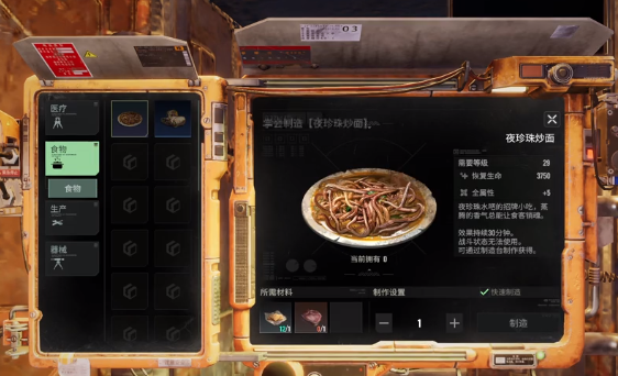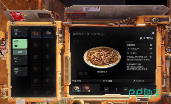在得到这一个食谱之后,接下来所需要做的就是来到制作台。制作台就是重要的场所,可以制作食物,还有各种道具,玩家可以根据食谱的提示,然后去准备相应的材料,就可以在制作台上成功地制作出大家所想要的夜珍珠炒面。