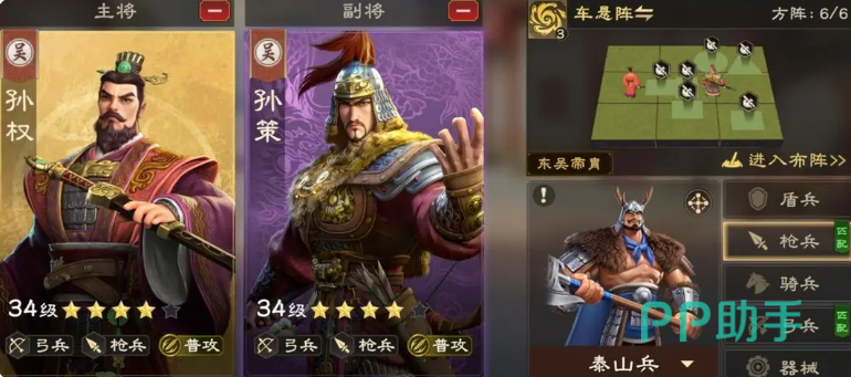 若计划进一步加大投入,建议转向孙权与孙策的高爆发组合。此搭配更适合搭配车悬阵使用,兵种仍推荐泰山兵,其属性加成能有效放大孙权作为橙色武将的输出优势。尽管车悬阵获取存在一定随机性,且孙权作为四皇之一需重点培养,但整体配置性价比突出——紫将孙策养成压力小,中等氪金玩家也能轻松支撑。前中期若能完成孙策觉醒,则胜负关键将集中在孙权的技能等级提升与星级突破速度上。待中后期孙尚香觉醒完成后,也可重新回归阵容补充火力。