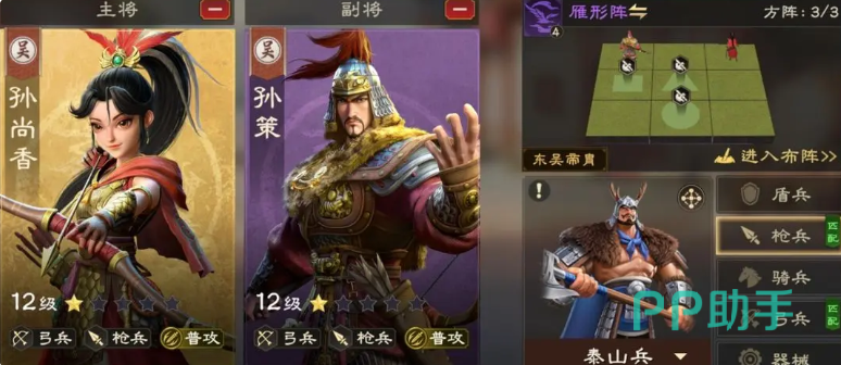若孙尚香已完成进阶培养,则该组合输出稳定性更高。此时还可引入孙权,并配合紫色阵法雁形阵进行布阵优化,兵种推荐使用泰山兵以增强整体作战能力。若前期已积累一定数量的孙权碎片,也可直接替换孙尚香作为主C,因其普攻联动机制更强,成长潜力更优。日常可通过名将谱和上将百将谱持续获取相关武将材料,初期采用孙尚香+孙策组合时,需注意预留部分养成资源,以便后期平稳过渡至孙权主力阵容。若孙尚香完成觉醒,亦可保留并融入后续主力队伍中,但切忌过度分散资源用于非核心武将升星,确保主力梯队完整发育。
