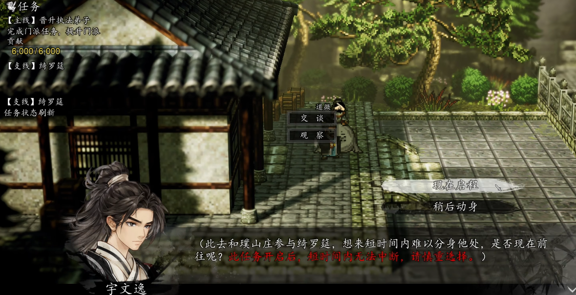 若选择【药圣·莫离】路线,需前置补全三处关键支线:首赴谭城与栾琼对话开启剧情;继往辽城,依次与小豆子、李大虎交互,完成后获得【壬水丹】;再登无名岛,触发【商亭苎和步微月躺在摇椅上】事件,与商亭苎交谈取得其赠予的丹方;后续还可观看【商亭苎指导宇文逸炼药】桥段,并习得【炼丹简札】。但需注意:携药圣直接进入绮罗筵,将在武当祖师殿剧情后导致其暂时离队,影响后续治疗环节收益。若走【药圣·冷无情】路线,则可在南疆主线完结、药圣正式入队后再回溯补全上述内容,时间更为宽裕。