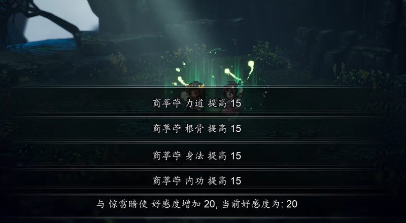 抵达和濮山庄前,请完成队伍整编:优先确保商亭苎在队;若未携带,则以娜乌替代。整编完毕后寻道微对话,即可正式进入山庄。首项关键操作为救治惊雷暗使——此举提升其好感20点,且治疗者将获得专属属性成长:由商亭苎执行,她本人获得力道+15、根骨+15、身法+15、内功+15;若由娜乌或顾思归施术,则全部加成归属娜乌。此机制是多数玩家规避药圣前置参战的核心原因。