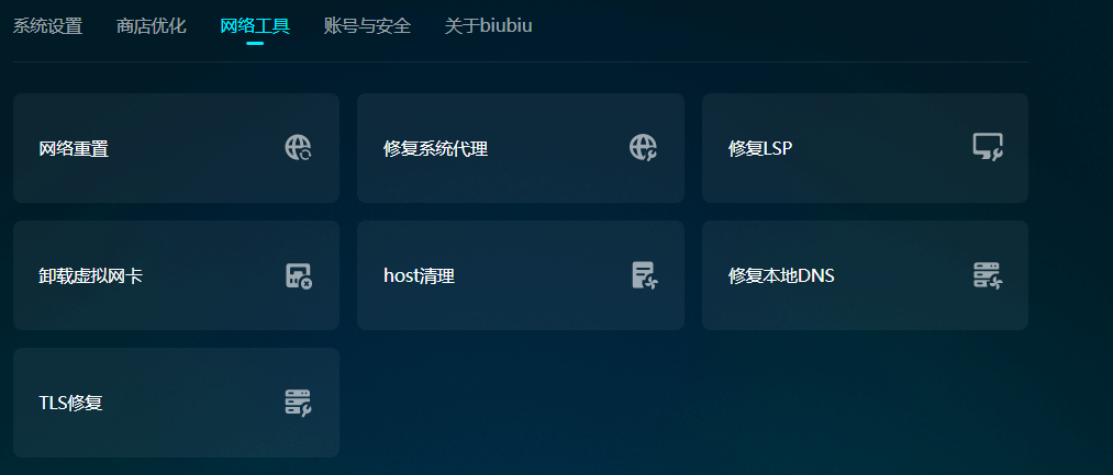 在加速之前如果电脑有其他问题,可以先在工具箱里选择对应的工具修复它们。biubiu工具箱为大家准备了7款工具,它们都跟网络修复有关,可以解决加速无效以及系统代理配置错误等问题,问题修复以后再去加速效果更好。接下来大家可以使用【biubiu不卡顿】去兑换3天免费加速,享受快乐的游戏时光吧。