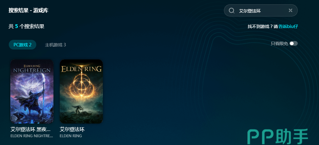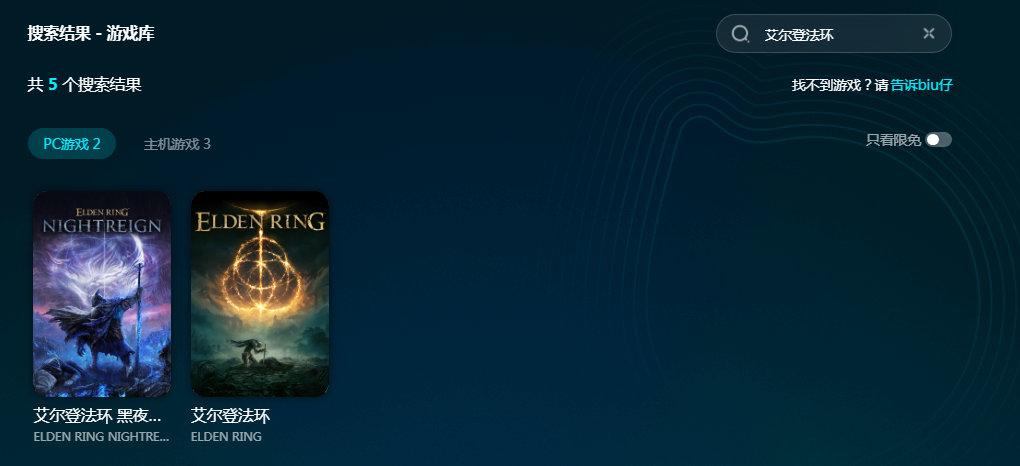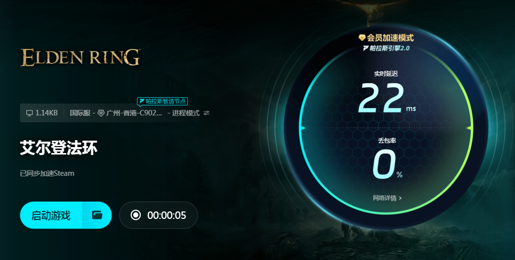 biubiu可以加速很多游戏,不管是端游还是手游都在加速范围内。进入软件搜索艾尔登法环即可看到5款PC和主机的加速资源,并且主机游戏是限免加速的。现在赶紧来注册新用户就能领取3H免费加速,点击加速键感受网络前后变化。