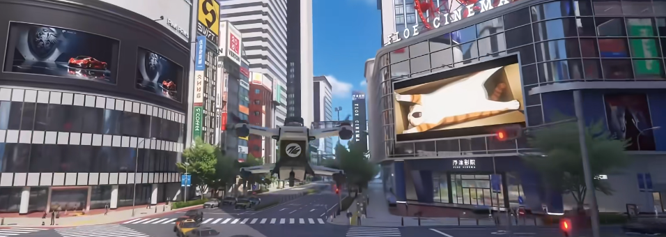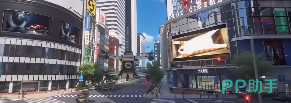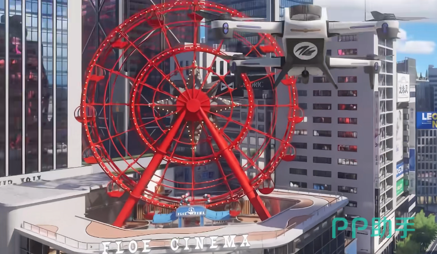 进入影院后,玩家可直观感受到沉浸式环境构建:主入口处的大型LED展示屏正循环播放多支原创宣传片,内容涵盖世界观设定、异象事件纪实及角色支线预告;同时,影院建筑顶部特别设计有直升机停机坪结构,为后续可能推出的空中任务线、限时挑战或剧情触发点预留了明确空间载体。