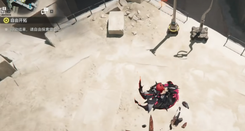 【协议20米】位于采石场塔吊顶端。攀至塔吊最高平台后,先跳跃至右侧独立小平台稳定落点;俯视下方可见天使单位集群驻守于基座区域。起跳后需保持水平前冲约0.8秒再执行下劈攻击,该延迟操作可显著提升命中率,确保攻击准确覆盖目标群。