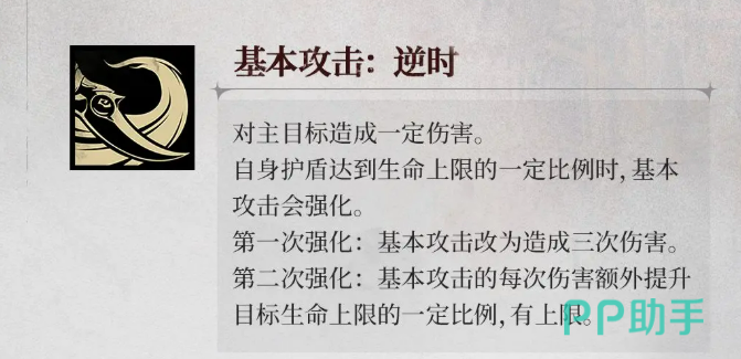 终焉的苍凛的基本攻击——逆时,看似普通,却隐藏着巨大的潜力。初看之下,她的攻击只有一次简单的伤害输出,但当她的护盾达到生命上限的某一比例时,她的攻击会发生变化。第一次强化,她的基本攻击会变成三次伤害输出。这意味着你的敌人会在一瞬间遭受三倍的打击,尤其是在高防御的敌人面前,三次伤害能迅速突破他们的防线。再加上第二次强化,攻击每次都能额外提升目标生命上限的比例,伤害数值甚至能突破传统的上限。可以说,苍凛的基础攻击并不像她看起来的那么简单,反而在特殊状态下,她的攻击会成为敌人难以承受的猛击。特别是在面对大群敌人时,她的伤害输出能迅速清场,令敌人无法反应过来。