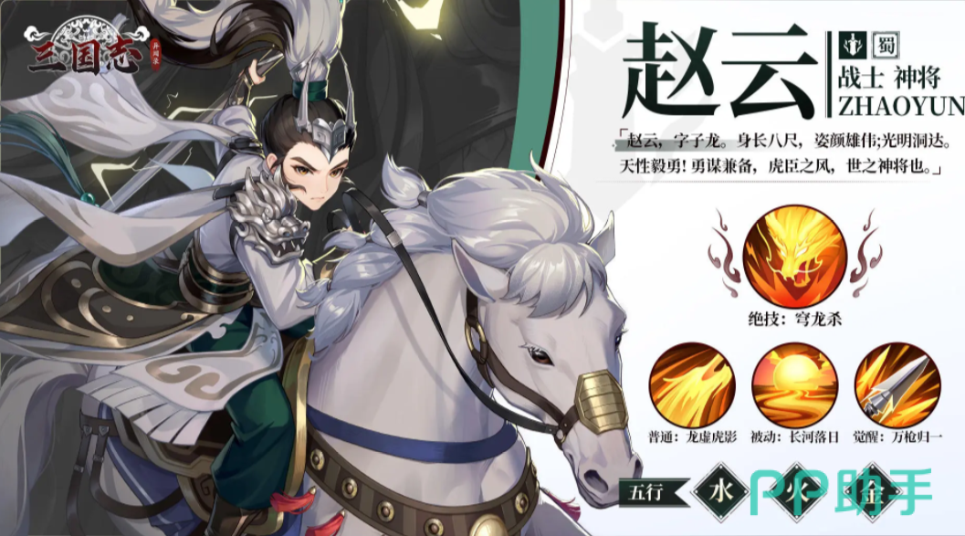 三国志异闻录是一个可以完全还原三国设定的游戏,不止场景,就连游戏里的武将包括每一个武将各自的策略,都做到了完美的还原,这一切要带来的是,赵云是大家非常熟悉的一个角色,三国志异闻录赵云阵容推荐,自然是玩家们应该要了解的内容,通过这些内容,可以找到最适合的阵营搭配,同时还会介绍一下这个角色在游戏里的相关属性和技能。