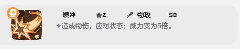 每一次的物理伤害都为50点,可是触发对应状态时,爆冲的物理伤害威力会直接提升5倍,而且该技能的耗能非常低。