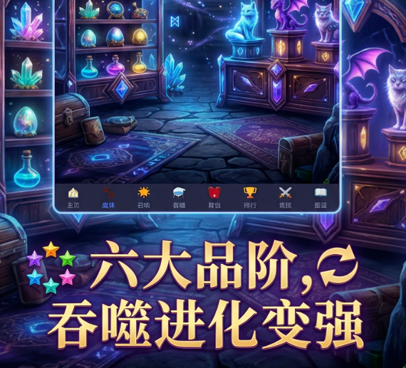 本作摒弃传统养成类游戏常见的冗长任务链与资源囤积机制,聚焦“吞噬即成长”的差异化核心循环。玩家无需反复刷图、挂机或完成大量日常,仅需引导魔宠吞食对应素材,即可实现等级跃迁与战力质变。该设定大幅降低操作门槛,同时强化成长反馈节奏,使每一次吞噬都具备明确收益感和即时爽感。
