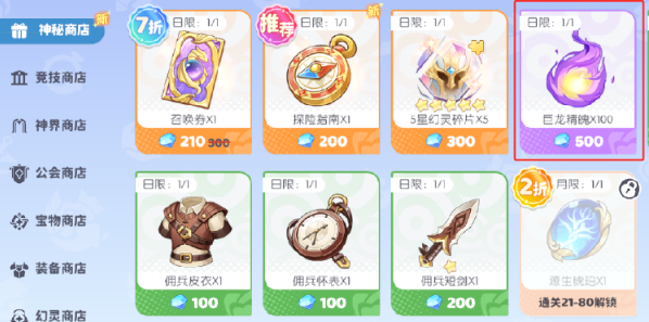 神秘商店中的巨龙精魄兑换,适用于前期快速突破场景。500钻石换得100精魄,可显著缩短职业等级成长周期,尤其在冲击100级并激活职业共鸣前效果突出。但需注意:一旦全职业达成100级及共鸣条件,精魄的边际收益将明显下降,此时应停止每日固定兑换,转向其他高价值用途。派遣刷新则属风险型操作——钻石投入后任务品质完全随机,存在较高概率获得低效任务,不建议作为常规钻石消耗方式。