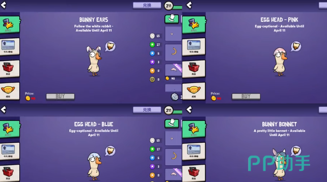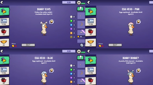 玩家可以看到这些帽子的设计全部都会紧扣主题,有俏皮的彩蛋帽,还有毛茸茸的可爱款。帽子支持金币购买,售价全部都是90,性价比还是比较出色的。