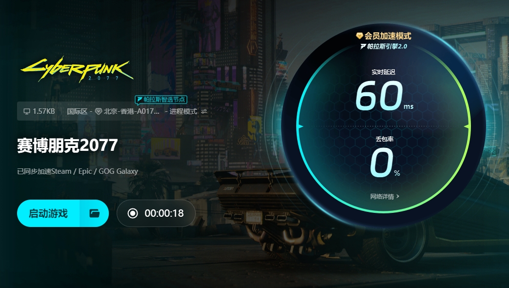 biubiu不像其他平台操作步骤复杂难懂,它拥有最简便的操作流程,我们直接点击上面链接下载,完成之后,首页搜索赛博朋克2077即可找到相应的游戏,然后就能一键开启加速了。加速之后,我们在其详情界面还能了解到当前的实时延迟和丢包率,后期觉得当前延迟过高的话,也可以自由切换节点,更多热门节点我们都是可以手动选择的,不想体验的直接在此界面关闭即可,随用随开很是便捷。biubiu是会为我们打造专属引擎,为大家提供最优质的加速服务。而且即便是针对像WiFi连接、校园网这种弱网环境,它也能享受毫秒级的连接速度,避免卡顿、掉线等情况的发生,让大家都能更顺利连接服务器。
