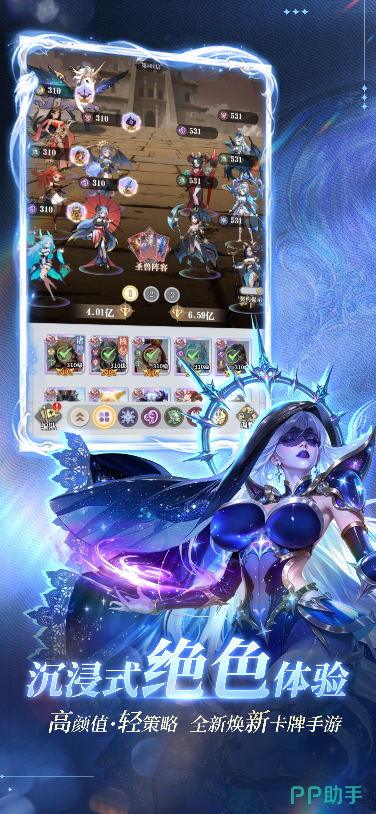 游戏核心玩法围绕「女神图鉴收集」与「智能编队策略」展开,共设计50余位原创高辨识度角色,严格划分为四大阵营与五大职业体系(坦克、物理输出、法术输出、辅助、特殊职能),并嵌入清晰的职业克制逻辑,提升战斗维度策略性。养成路径延续成熟框架:角色升级、星级突破、装备强化、技能升阶等模块齐全,但大幅弱化操作门槛——全场景挂机系统贯穿主线推图、资源副本、试炼挑战等环节,离线期间仍可持续积累金币、经验、升星材料等关键资源;日常任务支持一键委托、副本自动扫荡、试炼地图智能寻路,单日10分钟即可高效完成全部常规内容。